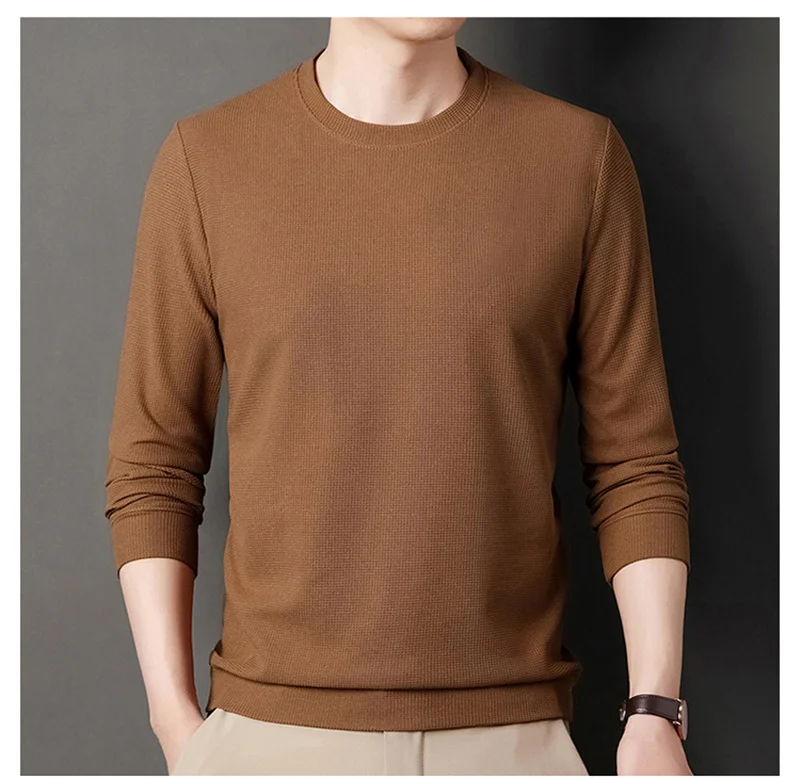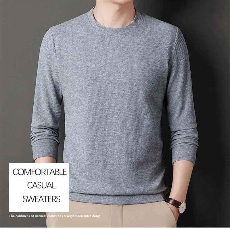 This waffle knit pullover combines casual comfort with timeless style. Its breathable and lightweight design makes it an excellent choice for layering or wearing alone during spring and autumn.