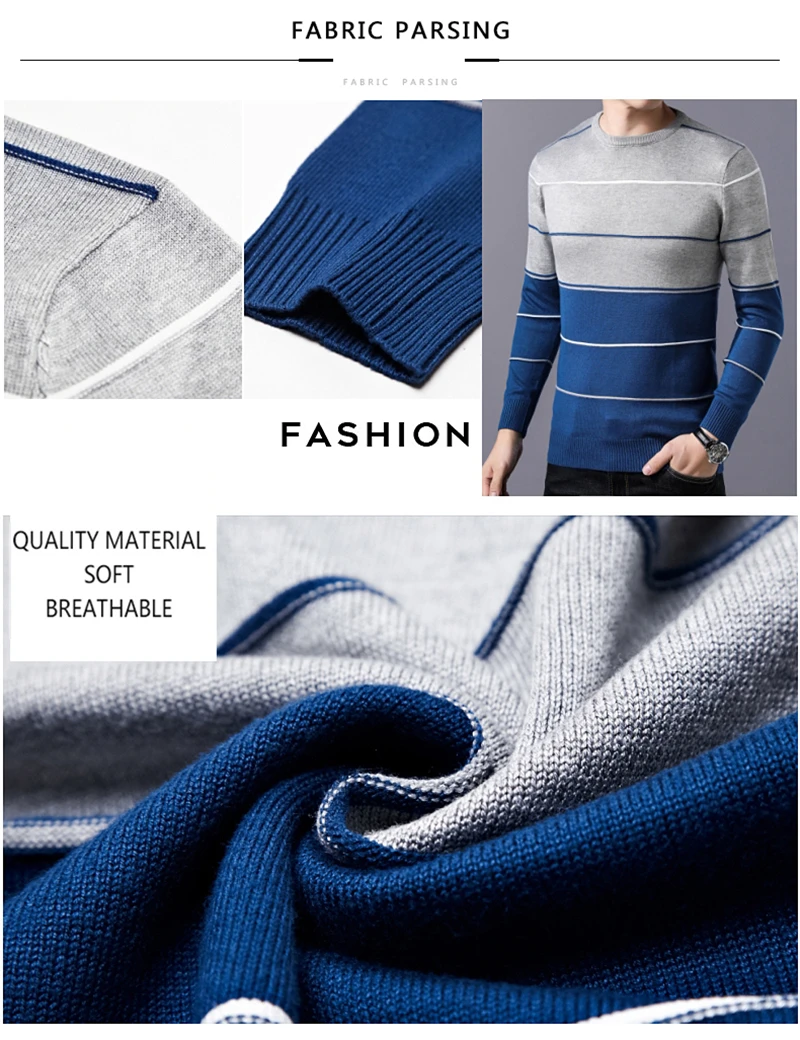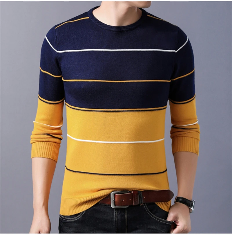 Men’s Slim Fit O-Neck Striped Pullover – Autumn & Winter Sweater