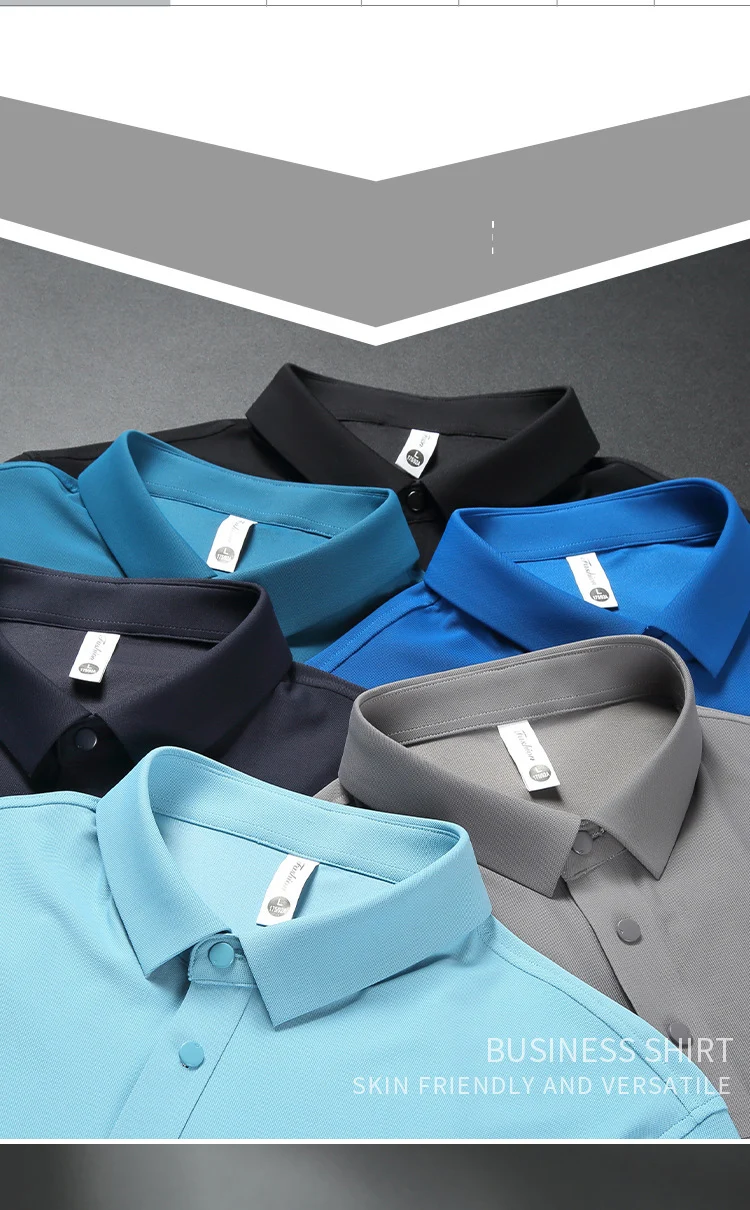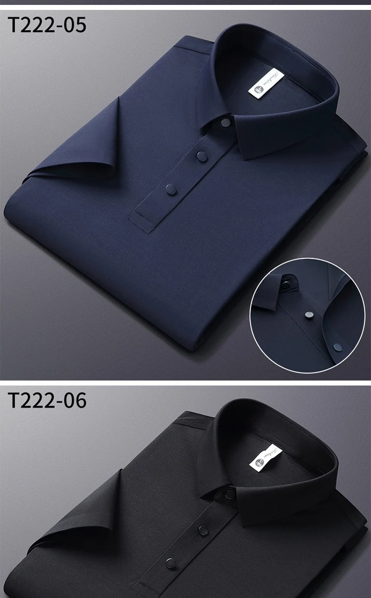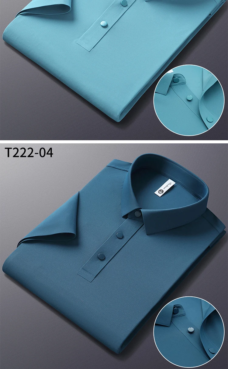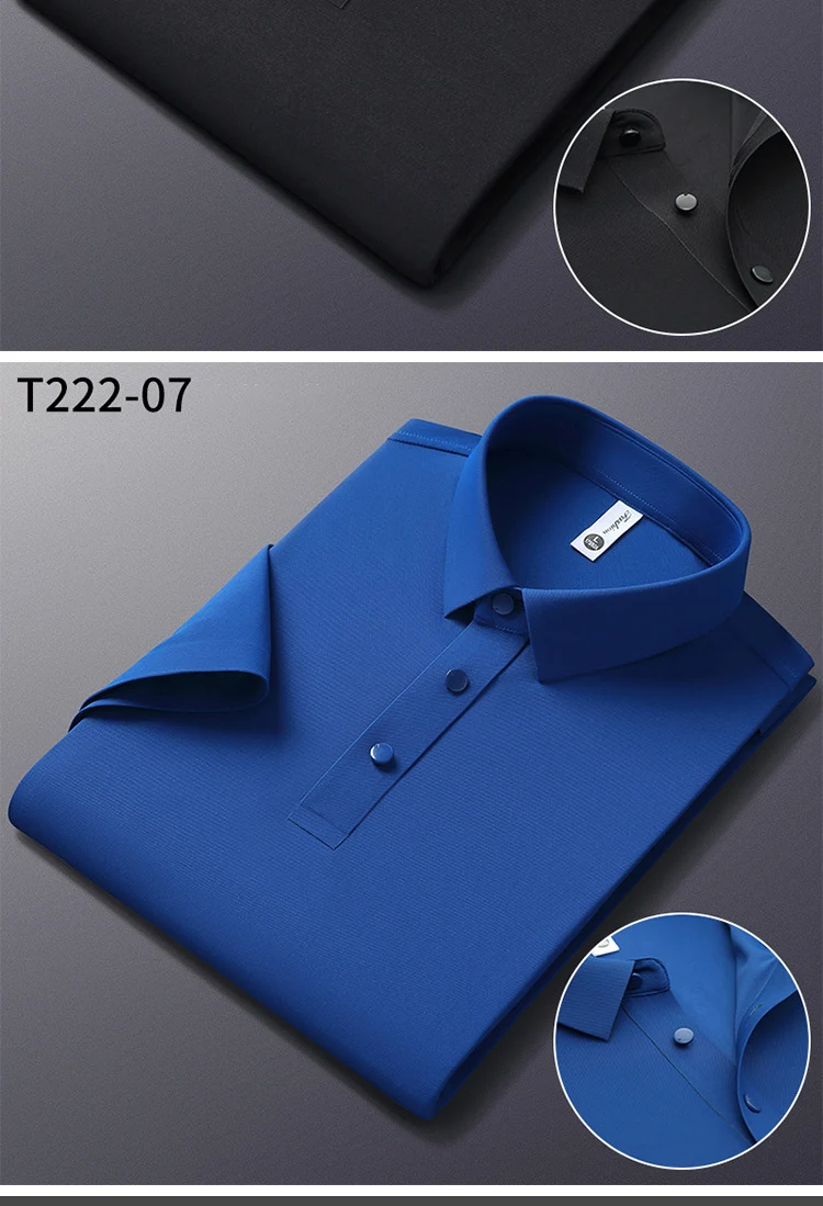 This smart casual polo combines comfort and sophistication. Its breathable, stretchy fabric and timeless turn-down collar make it perfect for summer workdays or casual outings, offering a sleek and professional look without compromising comfort.
