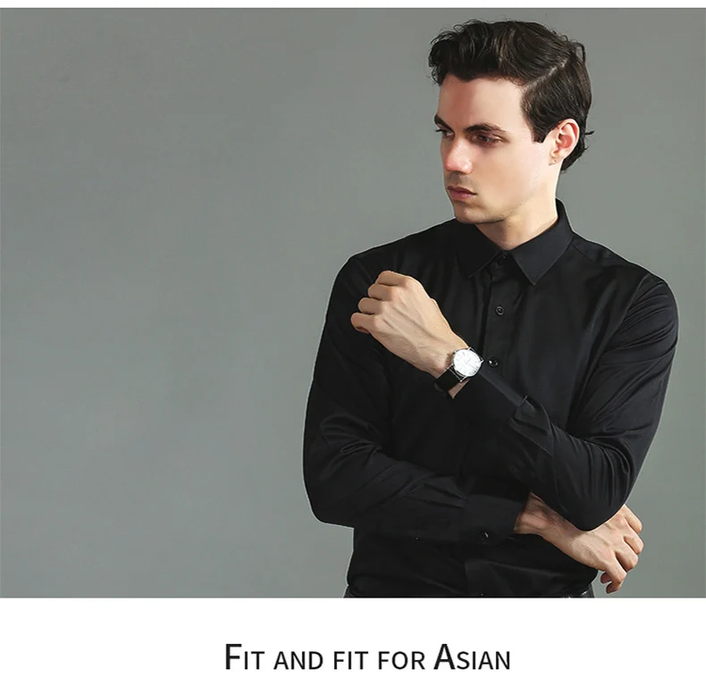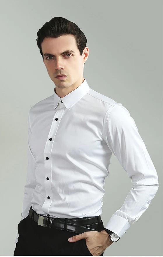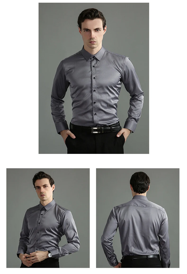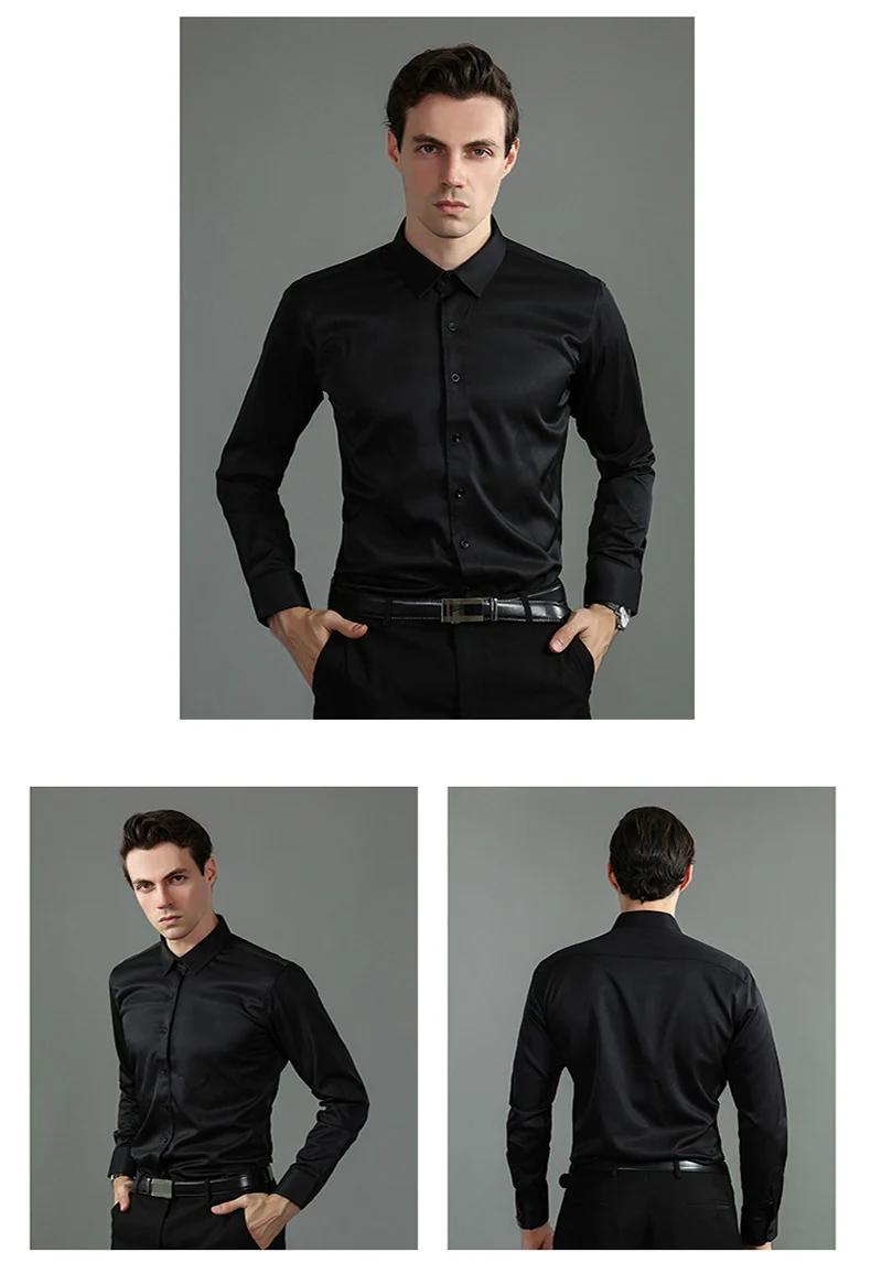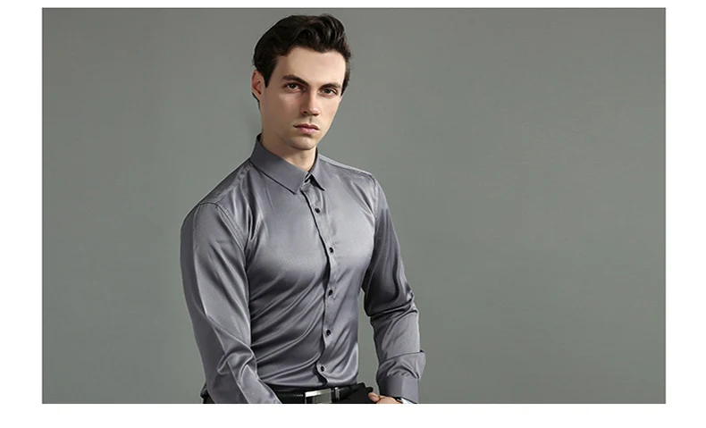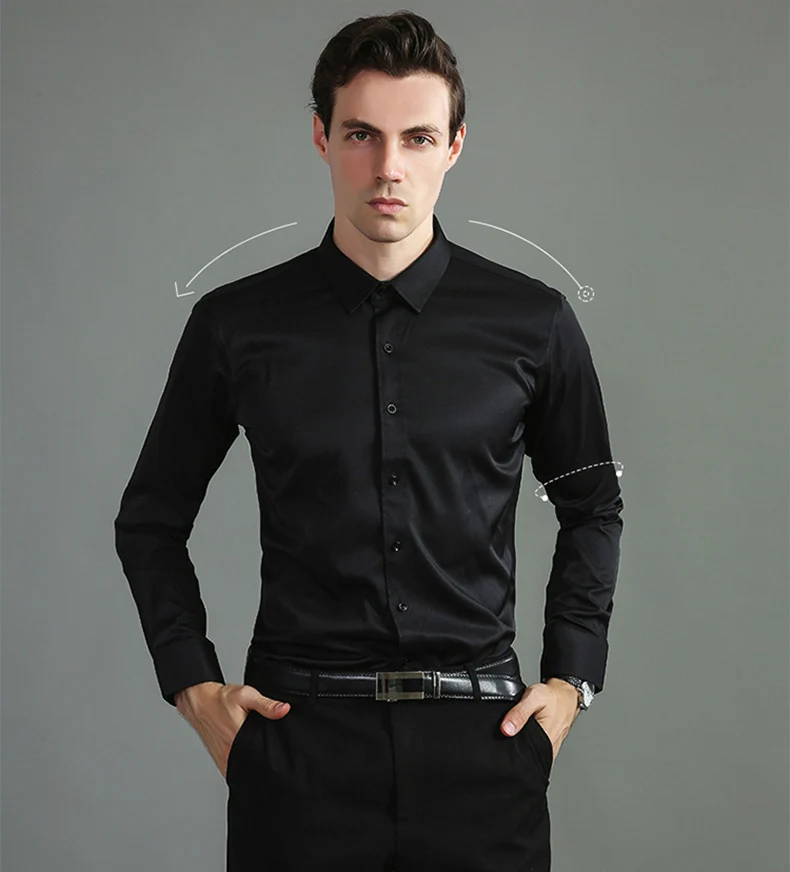 High Elasticity Men’s Shirt – Smart Casual Long Sleeve Turn-Down Collar