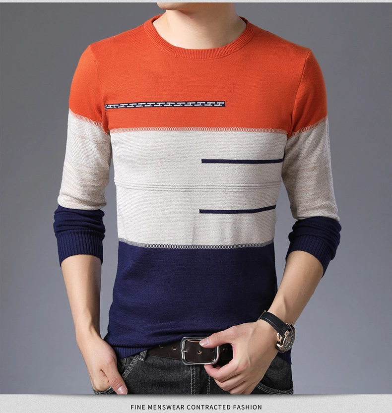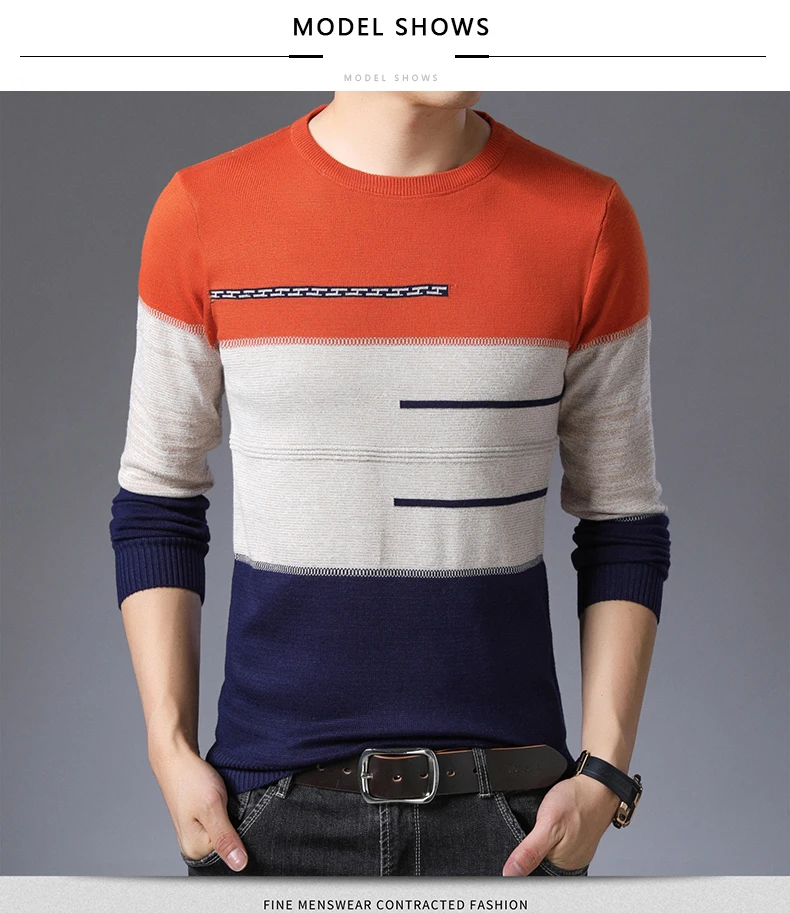 Designed for men who want both comfort and style, this striped slim-fit sweater offers a soft, breathable knit with a modern look. Perfect for autumn and winter, it balances warmth and elegance effortlessly.