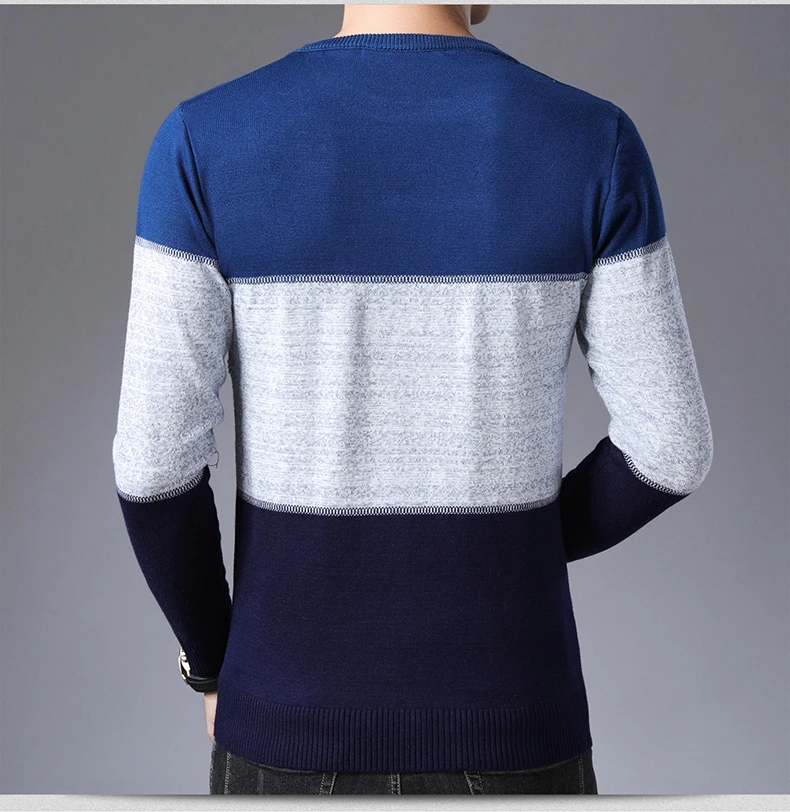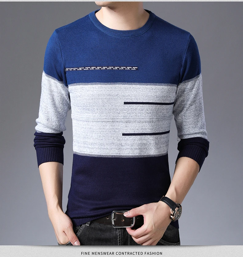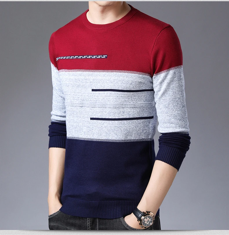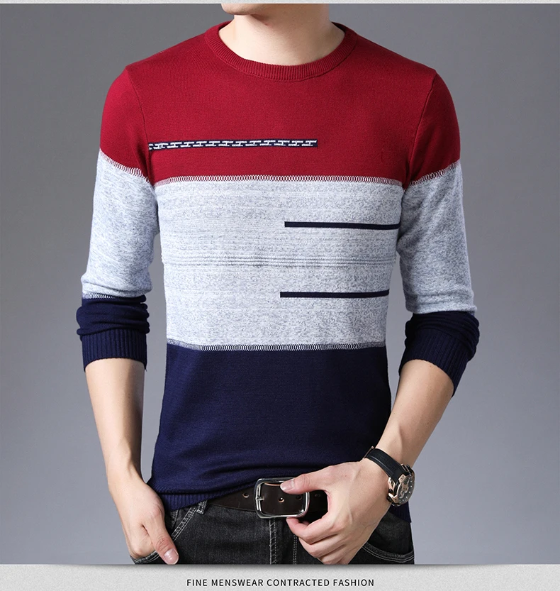 Striped O-Neck Slim Fit Knitted Sweater for Men