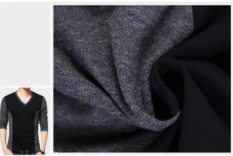 Men’s Slim Fit Casual Tee – V-Neck Long Sleeve Patchwork Top