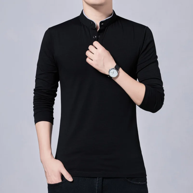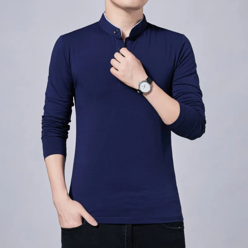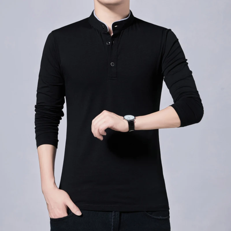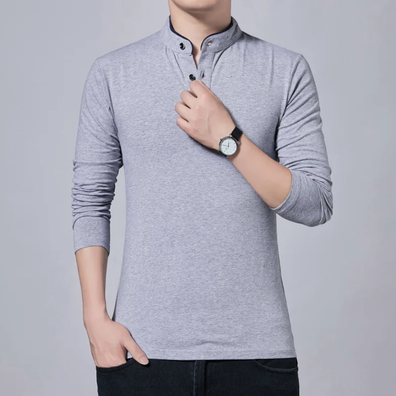 Men’s Slim Fit Casual Tee – Solid Color Long Sleeve Top