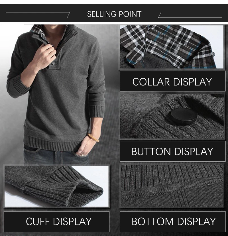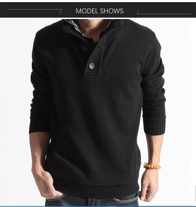 Men’s Mandarin Collar Pullover Sweater – Autumn & Winter Casual Knit