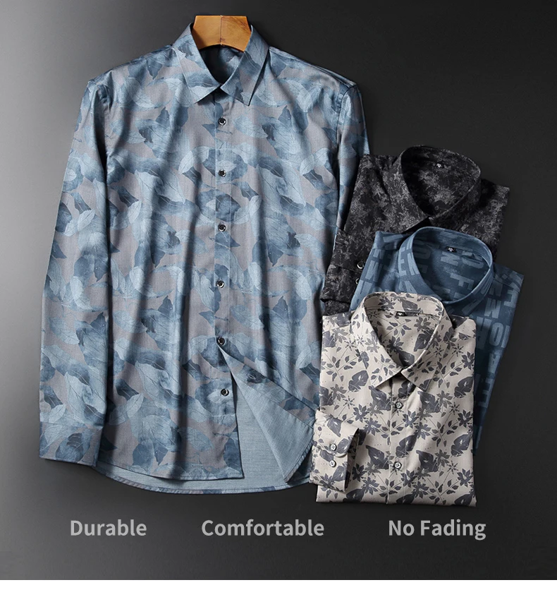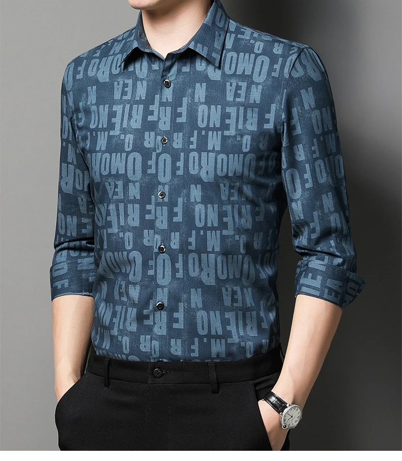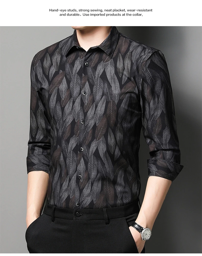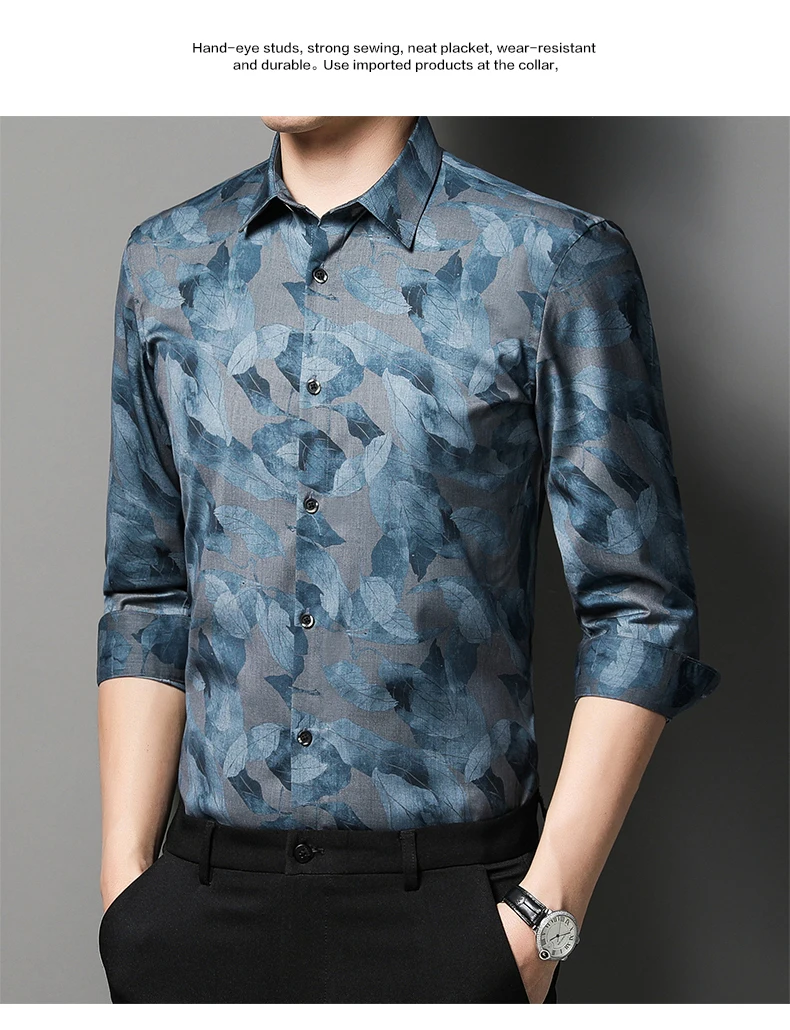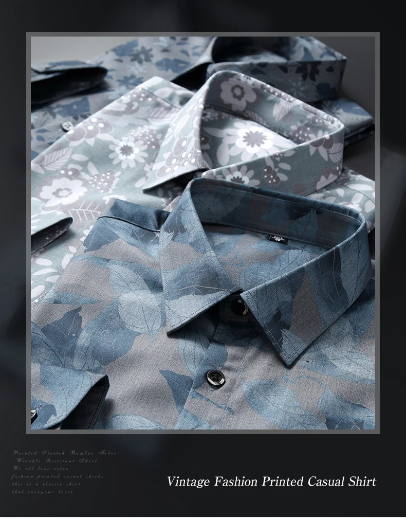 Retro Slim Fit Bamboo Fiber Shirt – Long Sleeve Men’s Casual Print