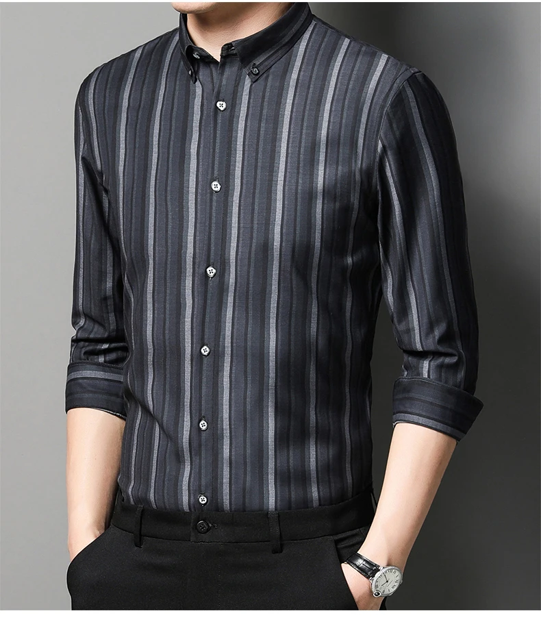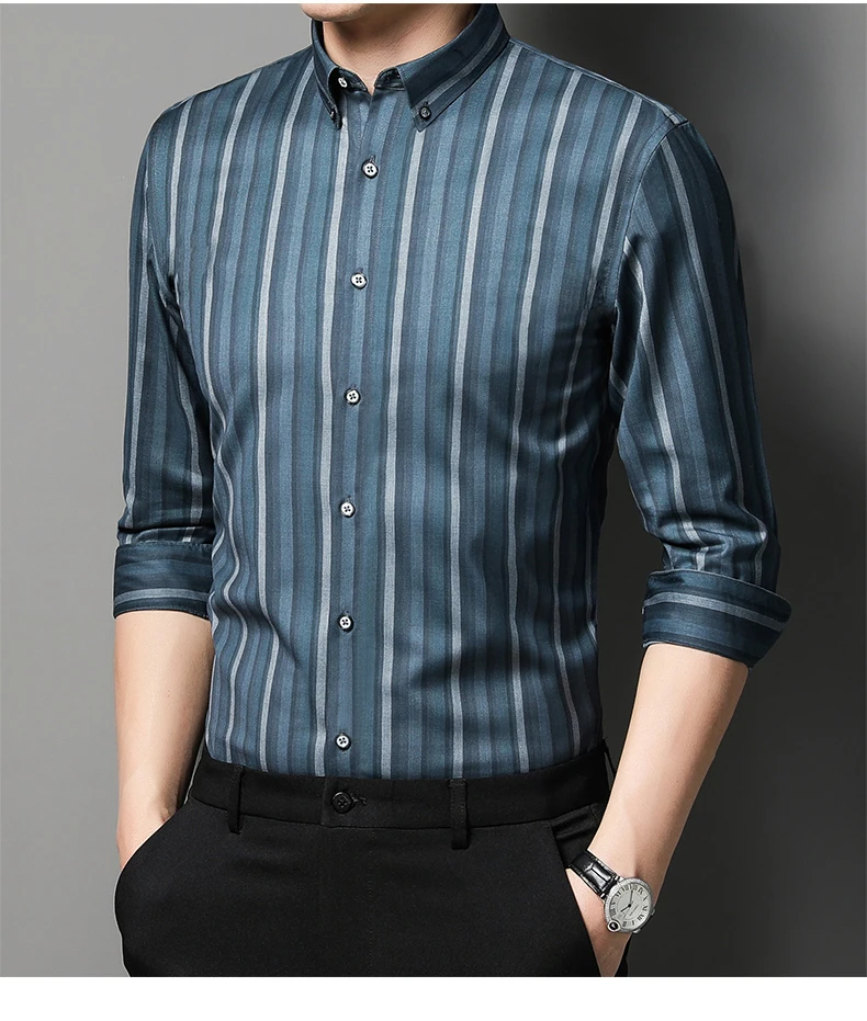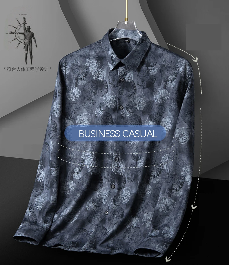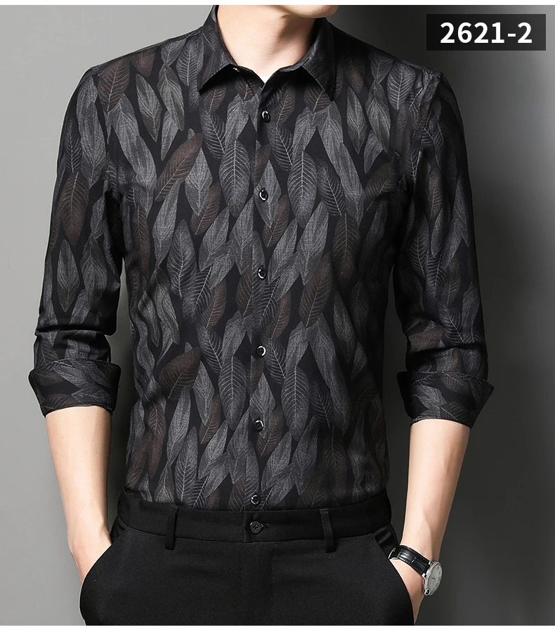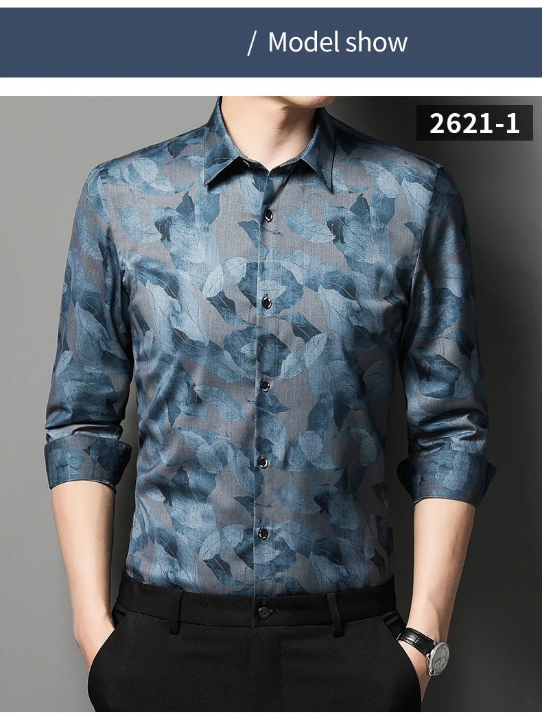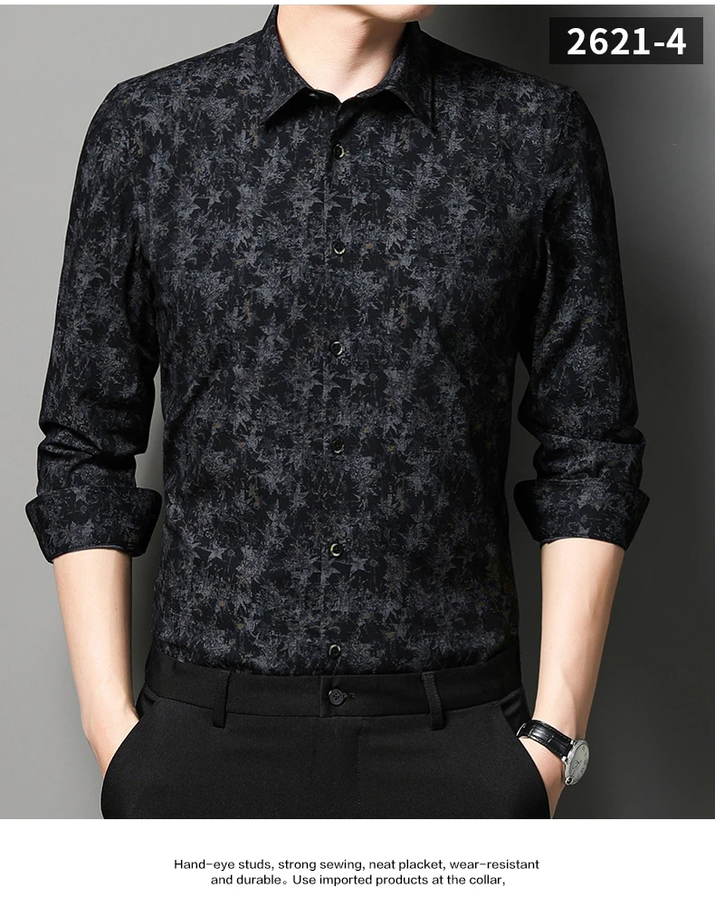 Retro Slim Fit Bamboo Fiber Shirt – Long Sleeve Men’s Casual Print