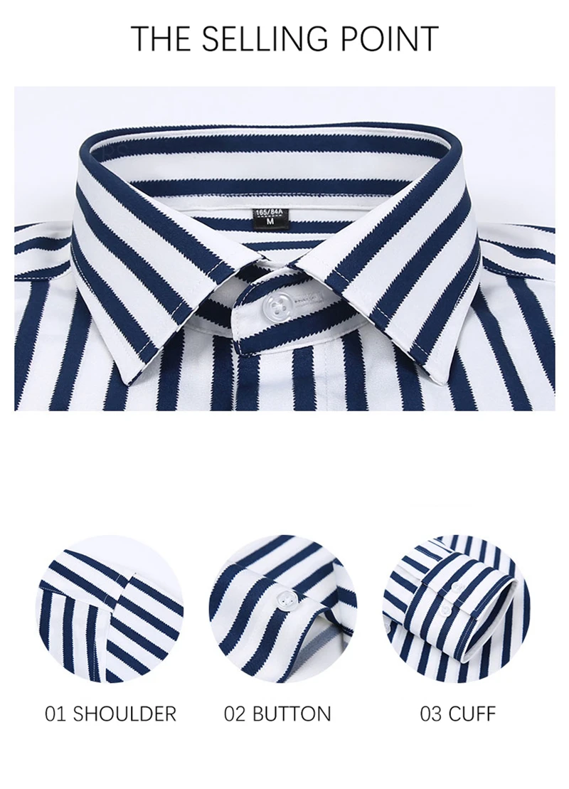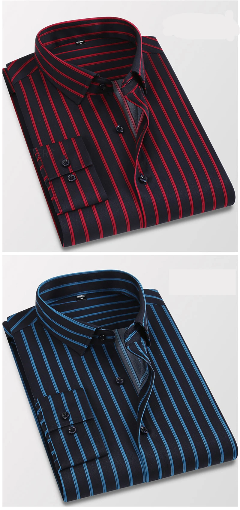 The StripeFlex Business Shirt delivers a perfect balance between professionalism and comfort. Crafted from a soft, stretchable fabric that resists wrinkles, it keeps you looking sharp from morning meetings to evening events. Its striped design adds a touch of modern style, making it an essential piece for any refined wardrobe.