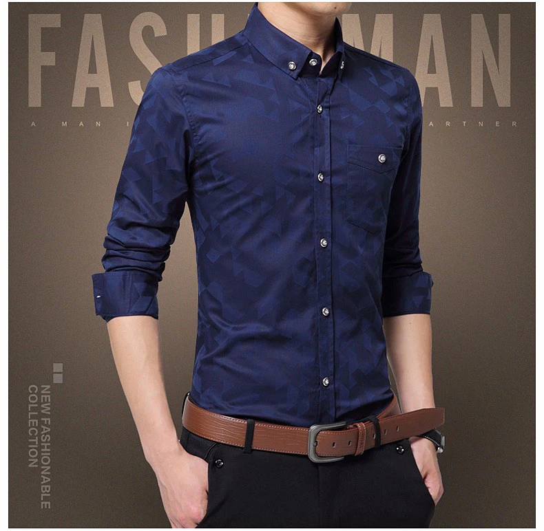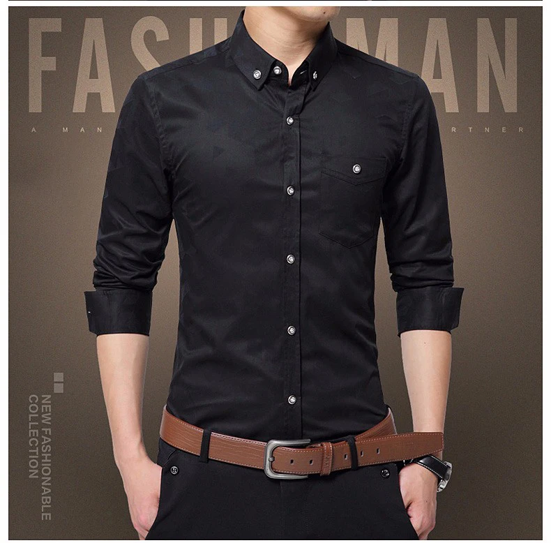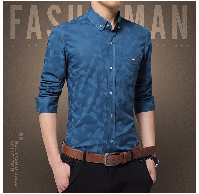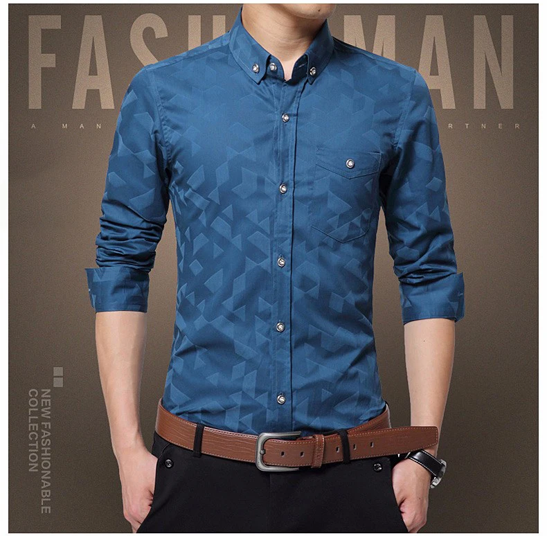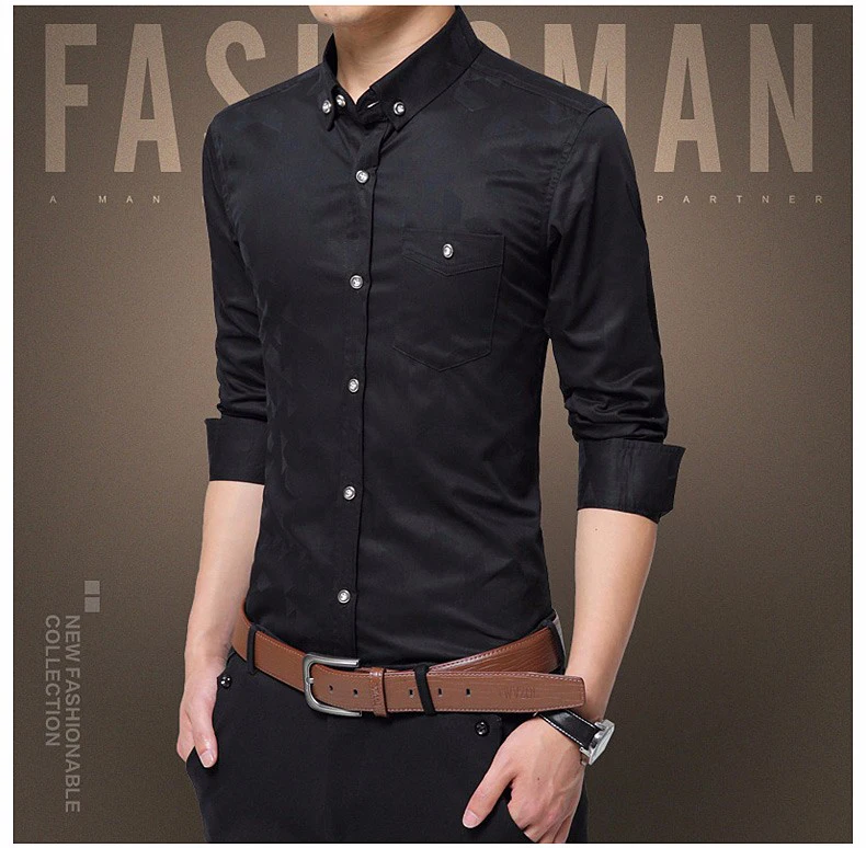 Fashion Casual Men’s Shirt – Cotton Blend, Jacquard Weave, Plus Size 5XL