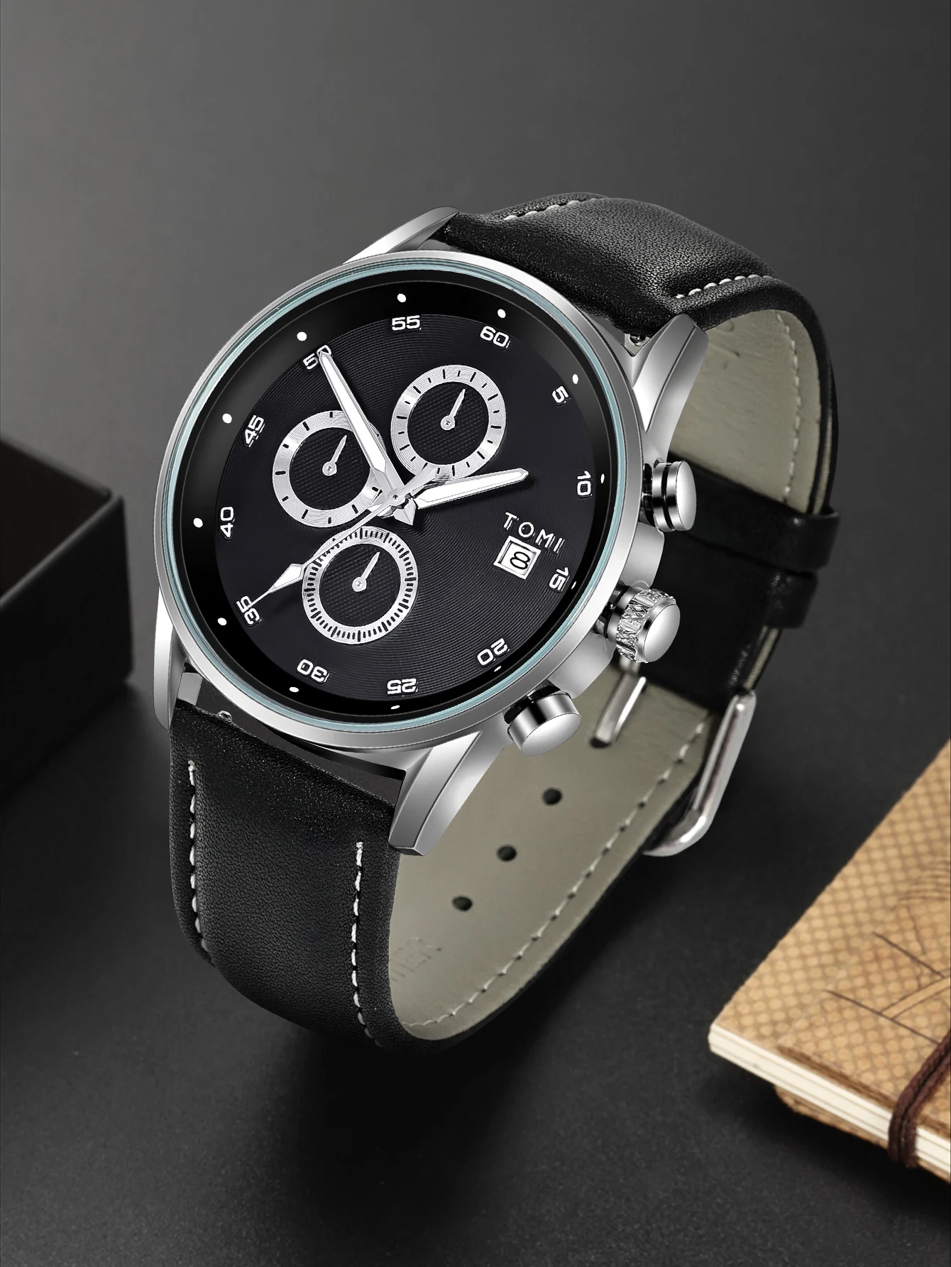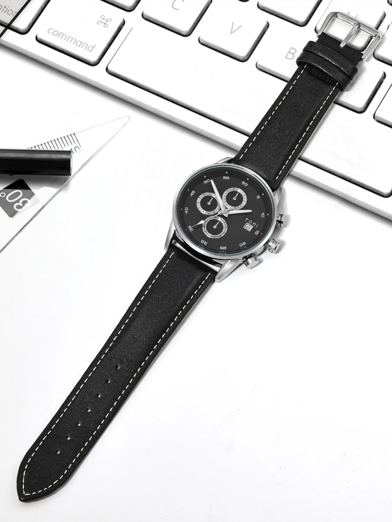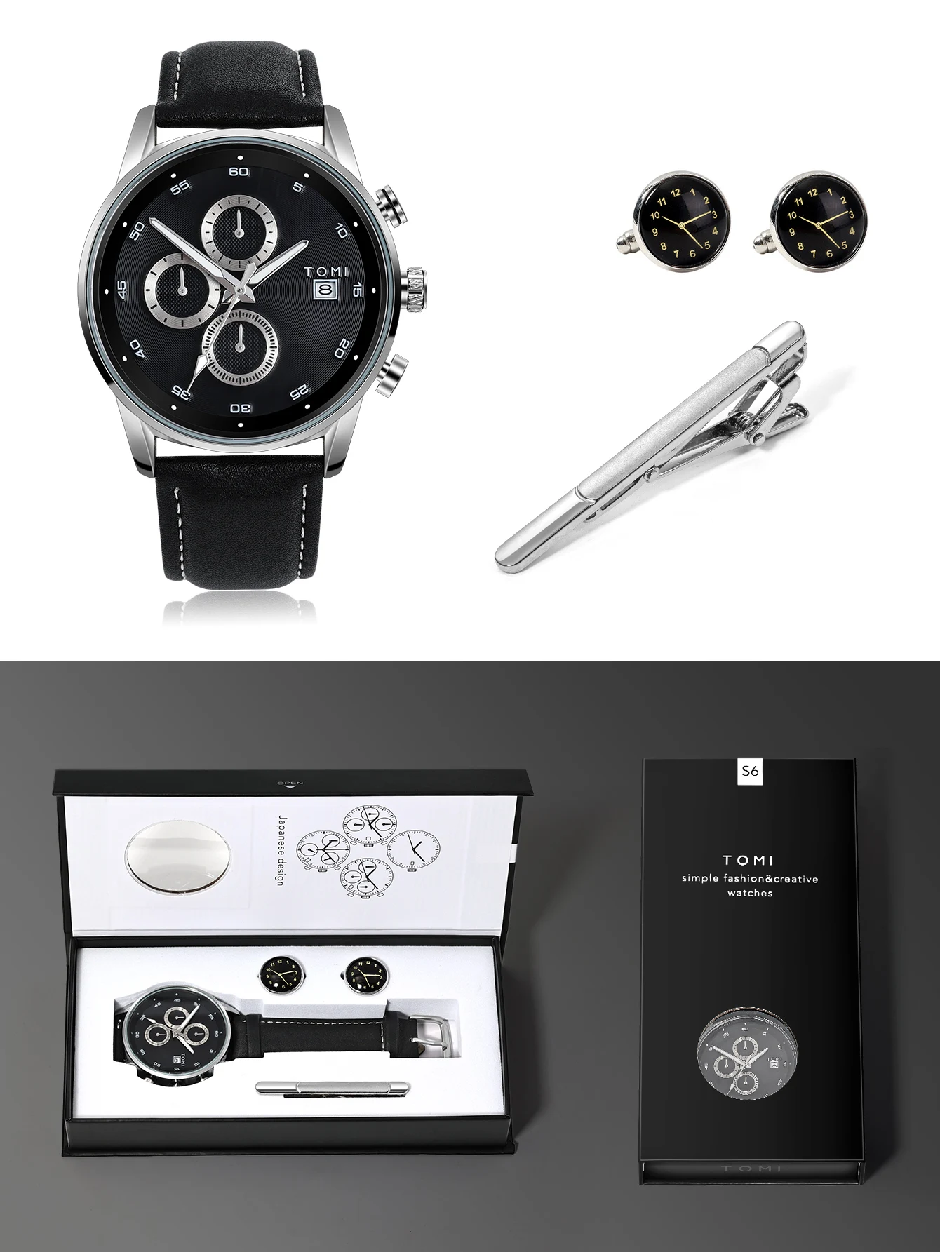4PCS Set Gift Box Men's Fashion Business Quartz Watch Leisure Calendar Watch Men's Cufflinks Tie Clip Watch Gift